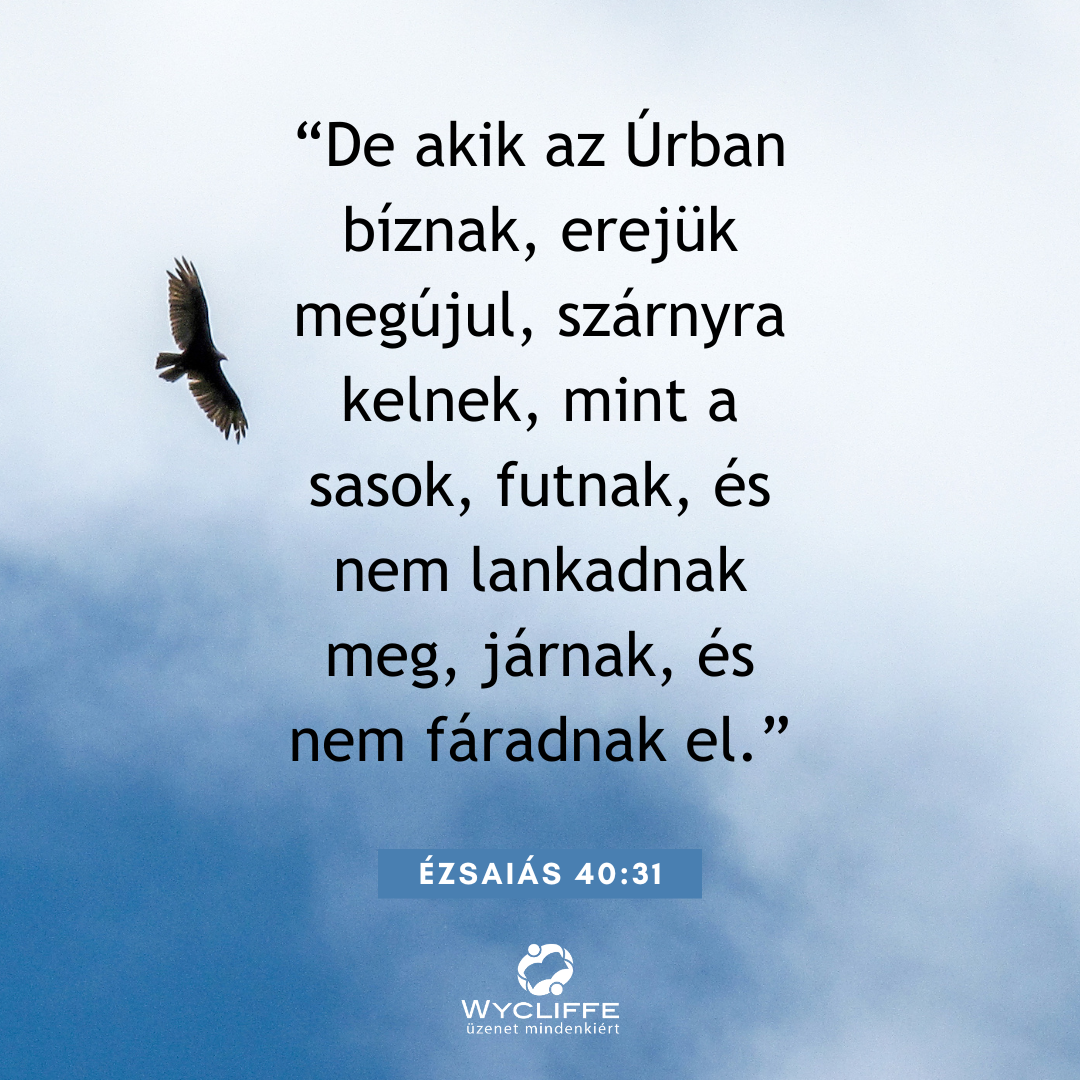 A 31-es igevers viszont hatalmas bátorítást ad és feltételezi az Úrba való kapaszkodást, a Vele való személyes kapcsolatot és a Belé vetett bizalmat. Az ige arról beszél, ha mindez megvan, akkor az erőforrásaink képesek megújulni, sőt olyan dolgokra is képesek leszünk, amire addig nem is gondoltunk. Bízzunk hát az Úr tökéletes időzítésében és fáradhatatlanul járjunk az Ő útján!